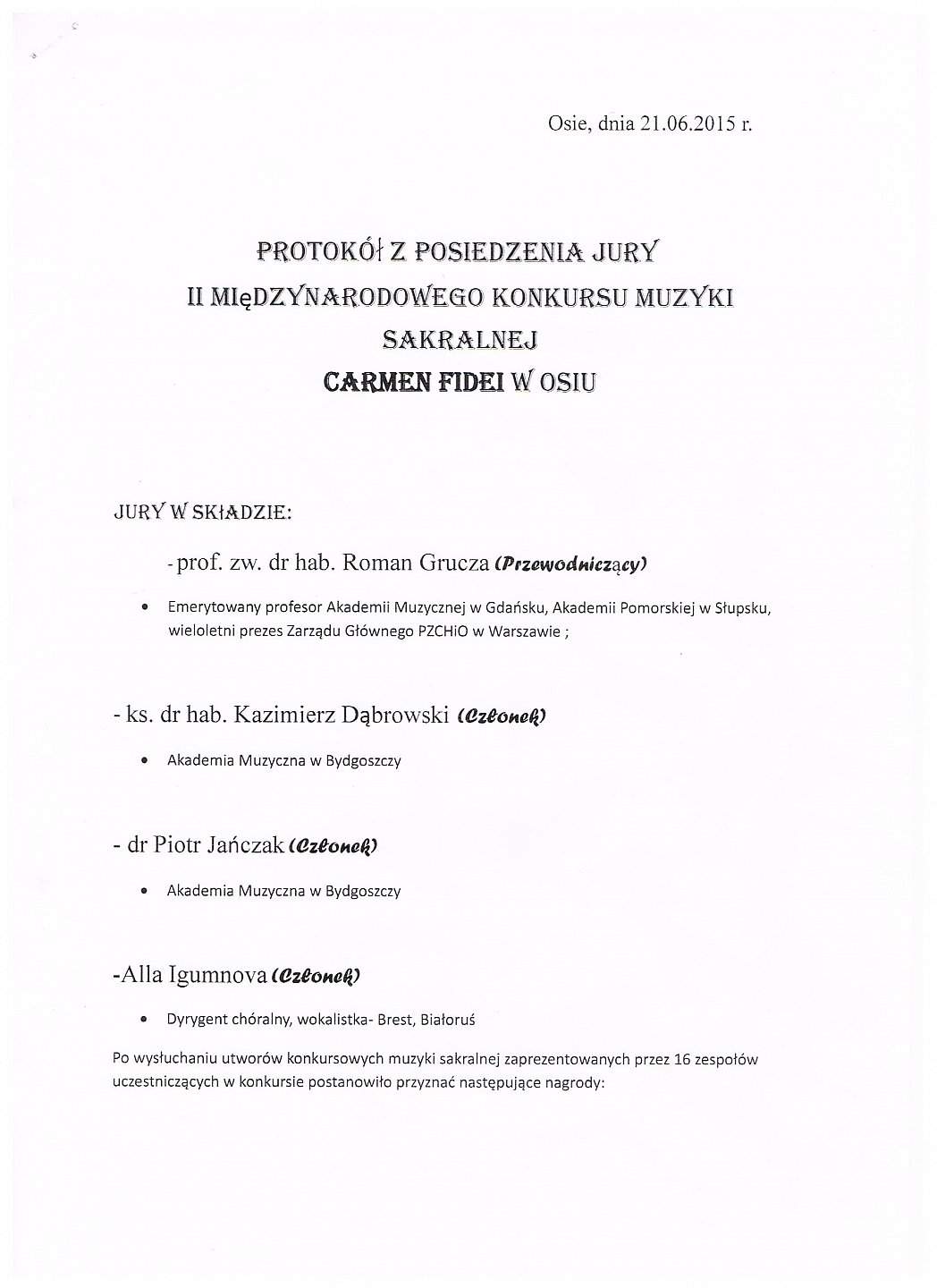 Wyniki Konkursu Carmen Fidei