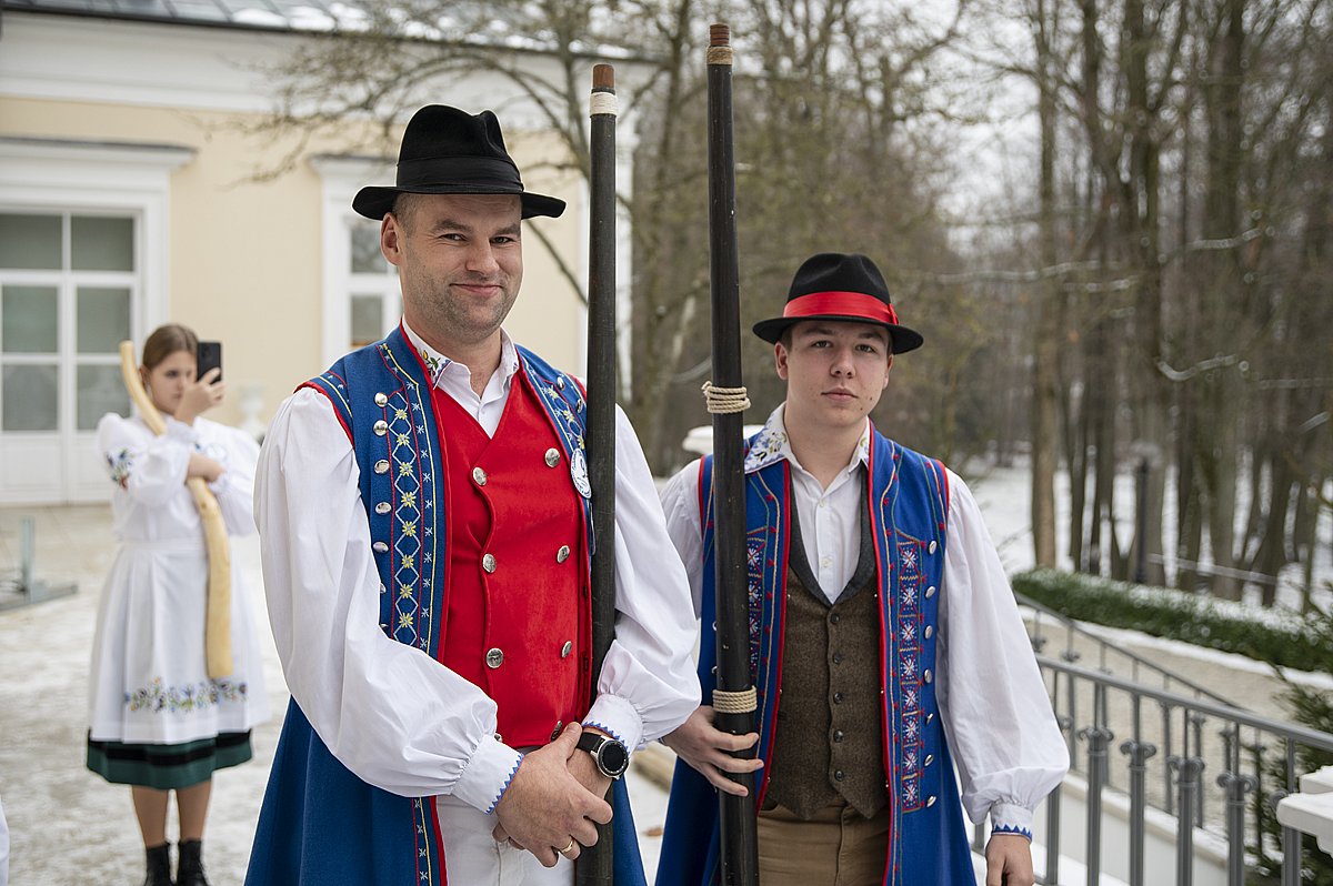 Kaszubi na konkursie gry na instrumentach pasterskich w Ciechanowcu