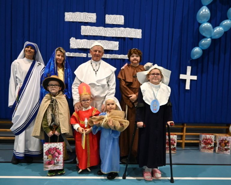 Wielką salę sportową wypełniły dmuchańce strażackie dla dzieci i atrakcje. Nie zabrakło strawy dla ciała. Pięknie sprawił się zespół "Mali Hopowianie". Był wspólne zdjęcia osób przebranych za Maryje, zakonników i księży, inne święte i aniołki. Emocje sięgnęły zenitu, gdy rozstrzygnięto konkurs na najciekawsze przebranie.